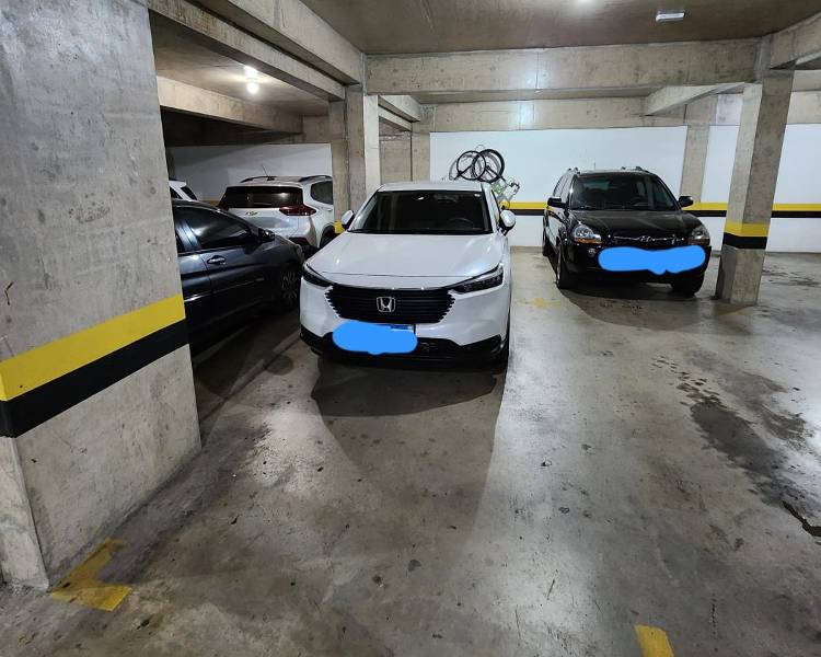 2 vagas de garagem cobertas, demarcadas e em linha