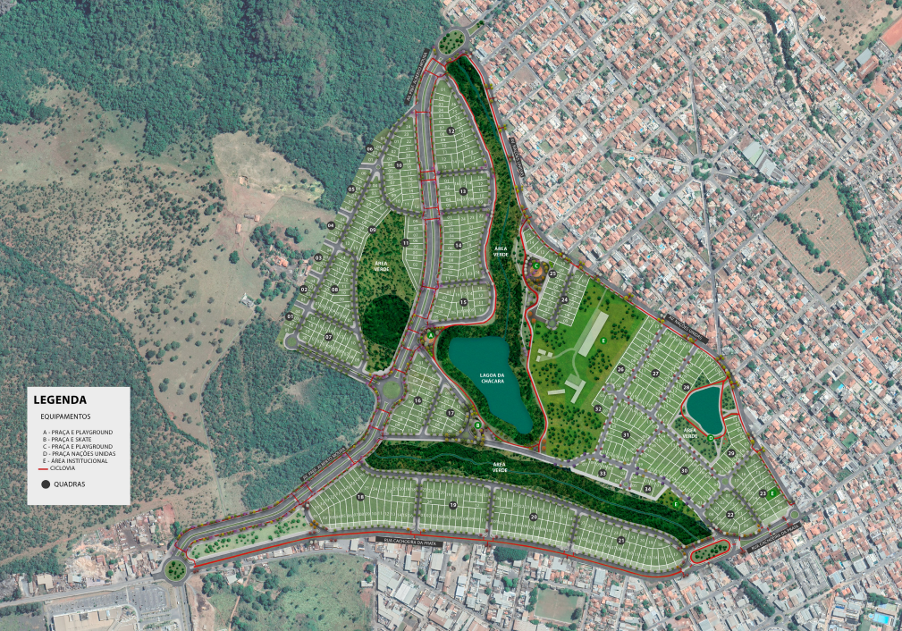 O Jardim da Serra é um bairro aberto com infraestrutura completa, contando com rede de água, energia elétrica, esgoto, ruas pavimentadas e passeios gramados. O empreendimento oferece paisagismo com espécies nativas, ciclovias, pista de caminhada, playground, pet play, pista de skate e áreas de convivência, além da revitalização da Lagoa da Chácara, que contribui para lazer e preservação ambiental.